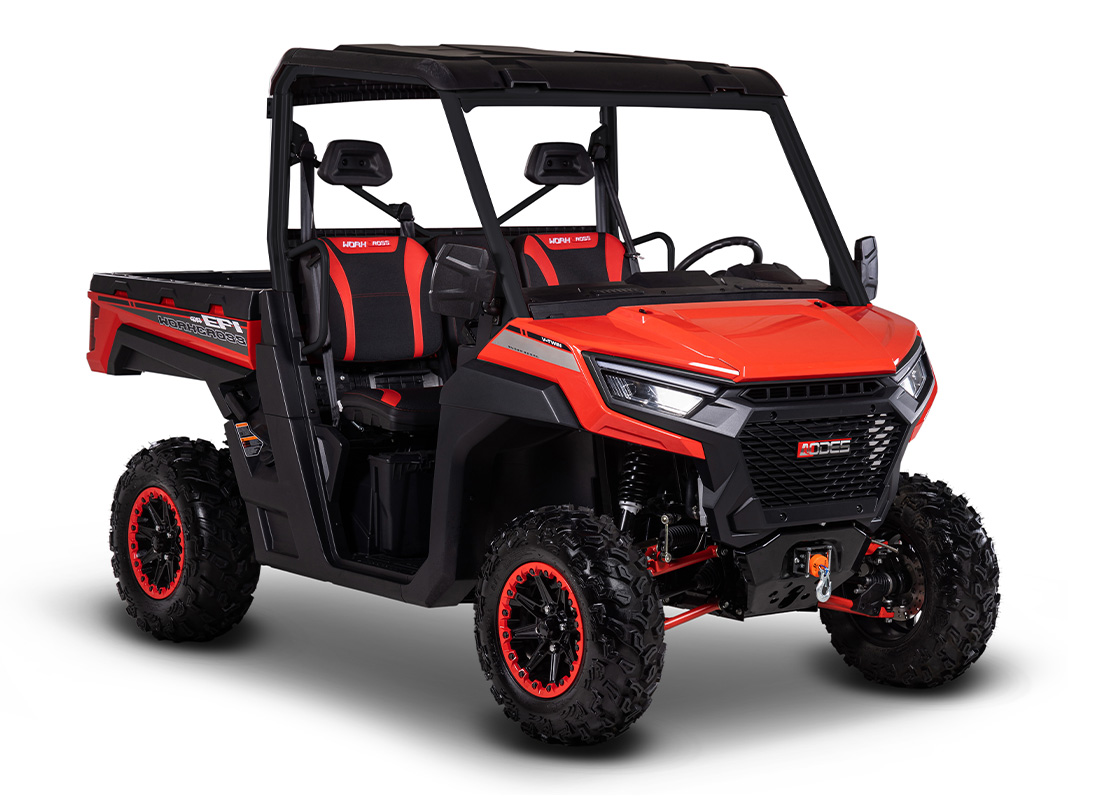 650-3 — начальная модель линейки мотовездеходов для работы AODES Workcross. У нее простая комплектация без кондиционера, отопителя и полноценной кабины. А двигатель установлен 650-кубовый на 54 л.с. — не самый мощный, но его возможностей хватает для преодоления раскисших дорог и перевозки тяжелых грузов.