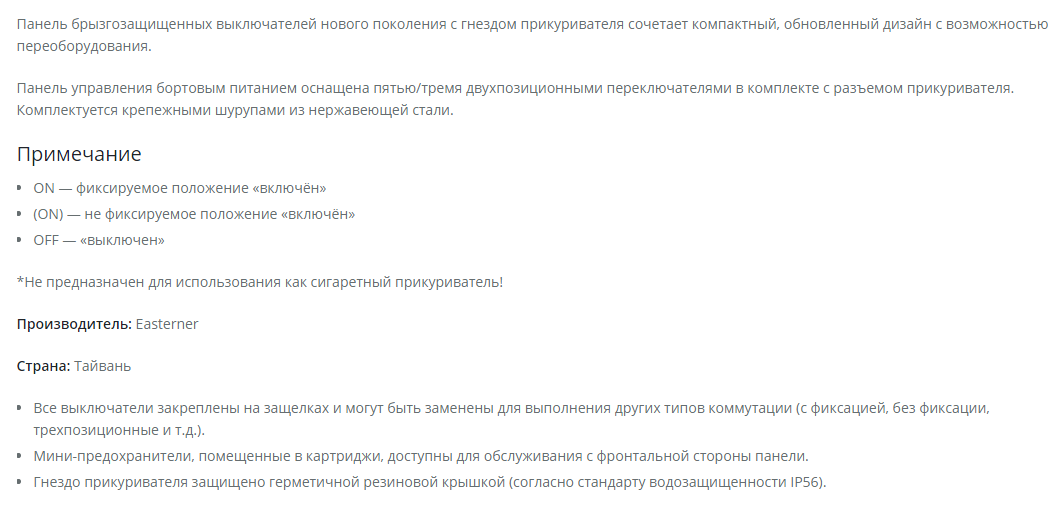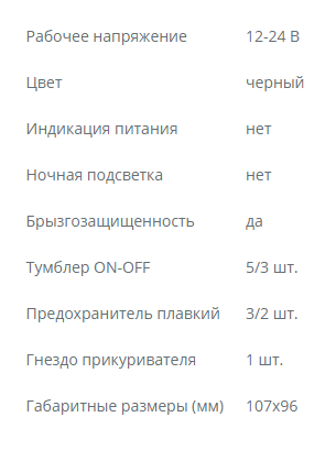 Панель выключателей постоянного тока, 5 (3) тумблеров и гнездо прикуривателя