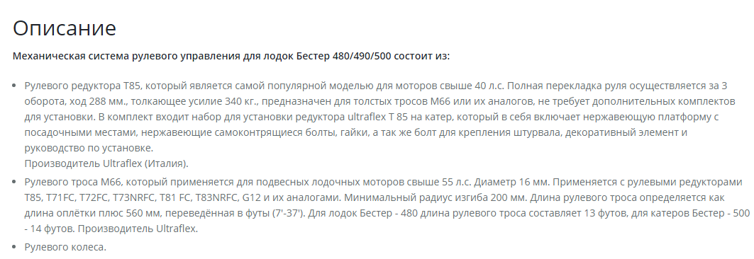 Комплект рулевого управления для лодок Бестер - 480/490/500