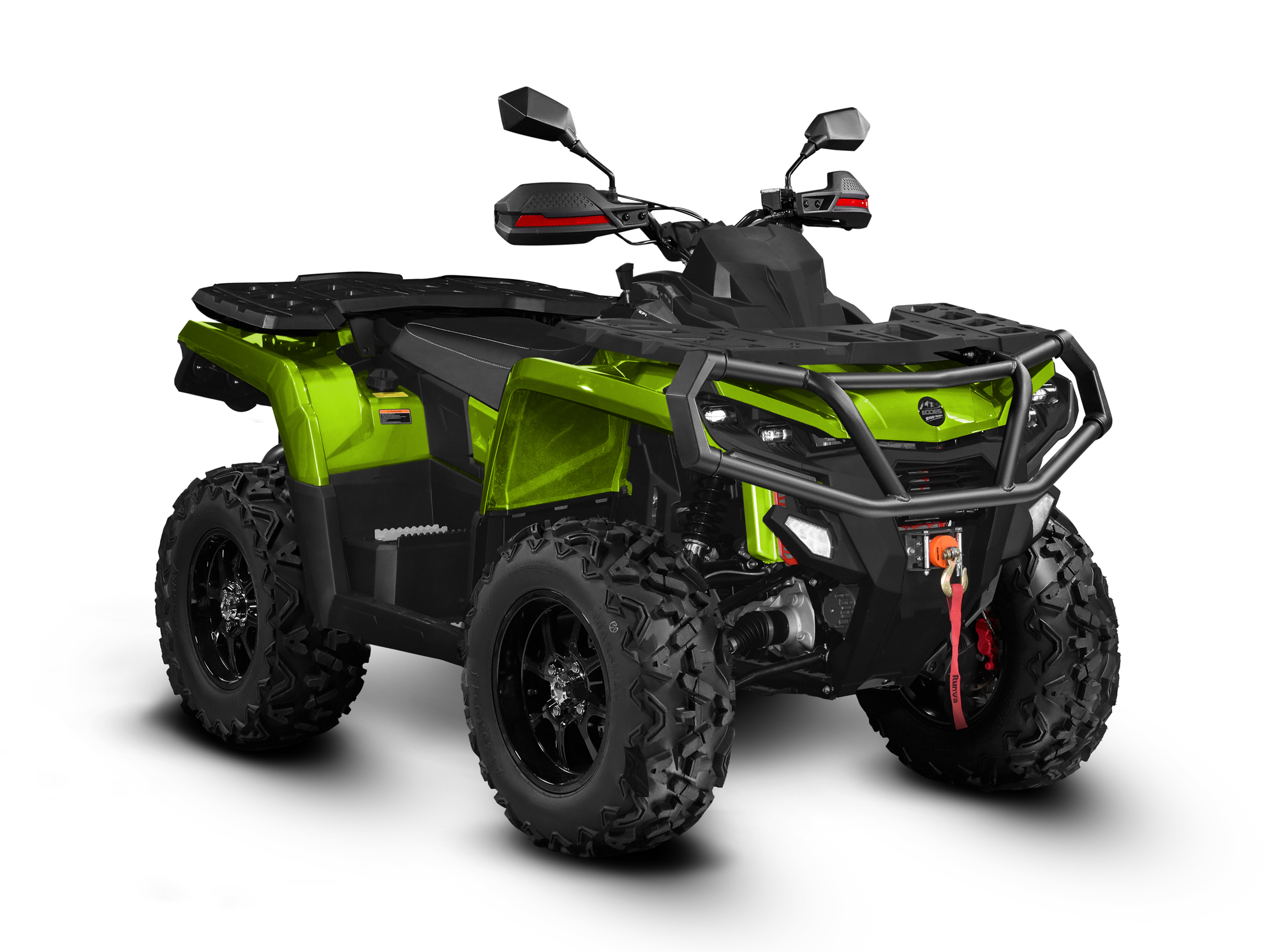 Богатая базовая комплектация. Электроусилитель руля и защита рук позволят с комфортом маневрировать даже в тяжелых условиях. Лебедка с тяговым усилием 1500 кгс поможет вытащить квадроцикл из любой передряги. Передние и задний бамперы защитят корпус от повреждений. Алюминиевые диски, яркие светодиодные фары и семь цветов на выбор.