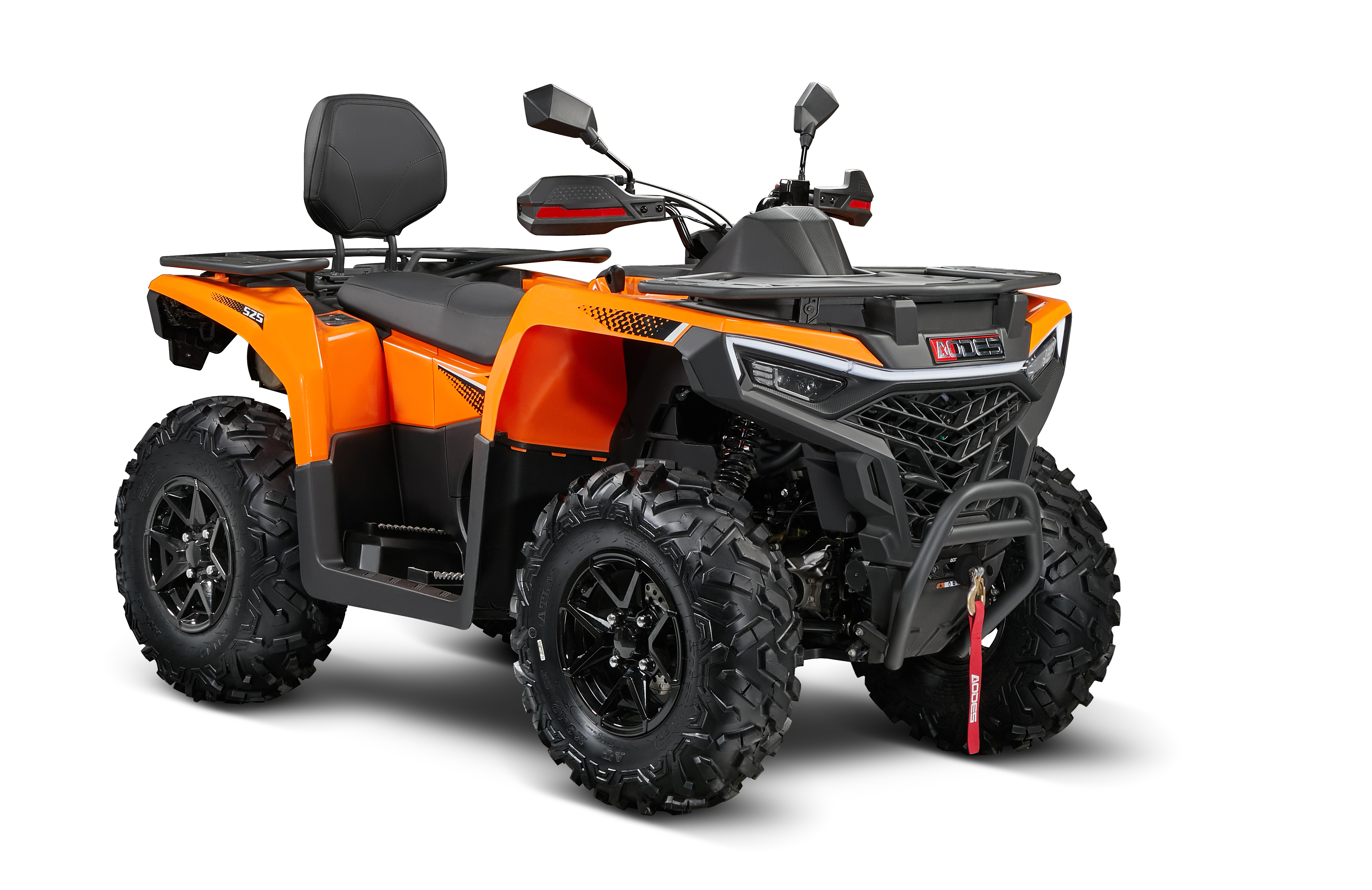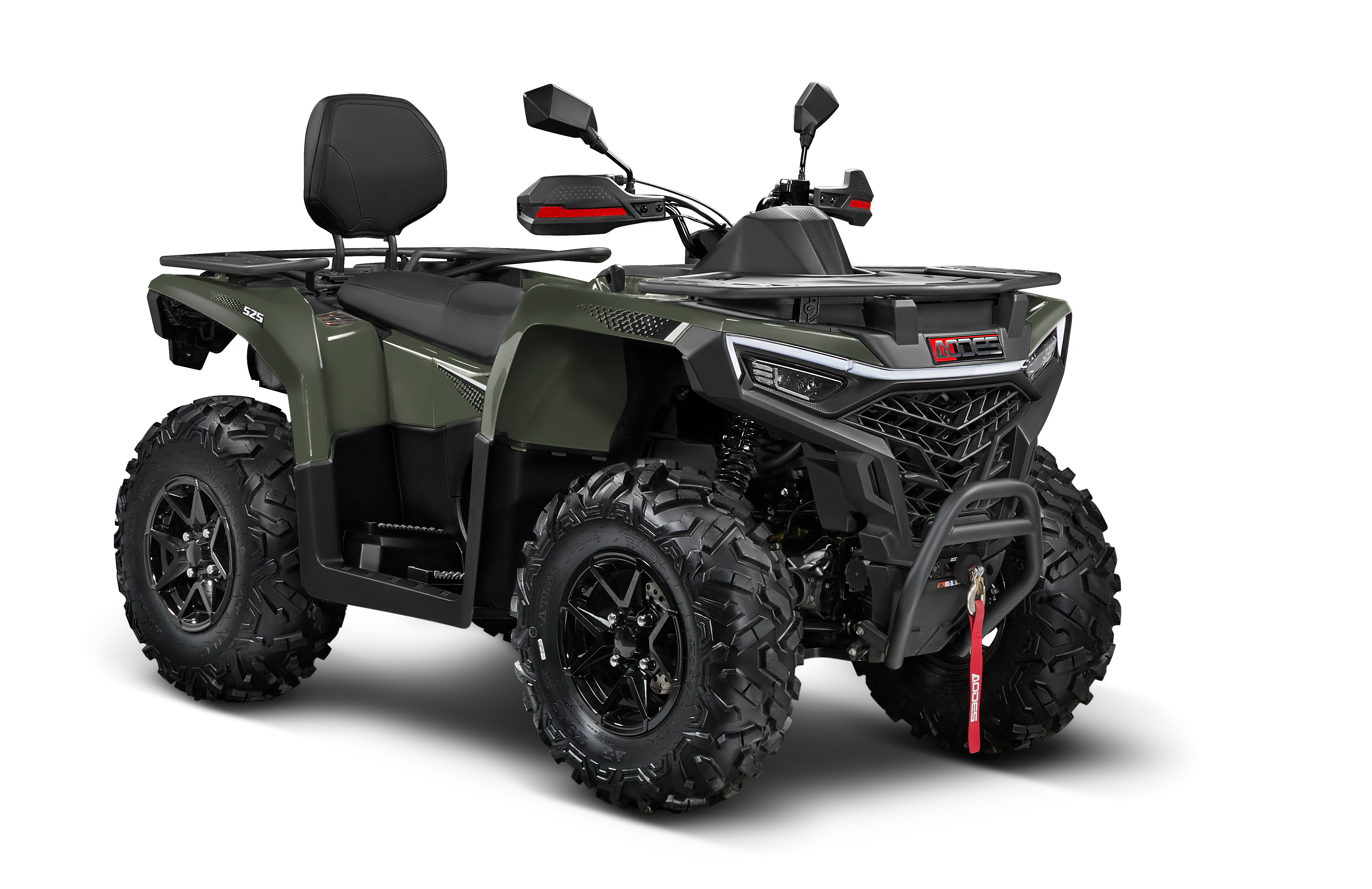 Pathcross MAX 525 — младшая модель линейки квадроциклов AODES, самая доступная и малокубатурная. Она отлично подходит в качестве первой или гостевой. Двигатель у нее 38-сильный — в сочетании с полным приводом и «понижайкой» такой мощности с запасом хватает, чтобы проезжать по грязи. К тому же, у квадрика высокий 285-миллиметровый клиренс и внедорожные шины (27″). А еще его проходимость повышает скромный вес — 365 кг. За счет него техника меньше проваливается в грязь, а вытолкнуть ее проще.