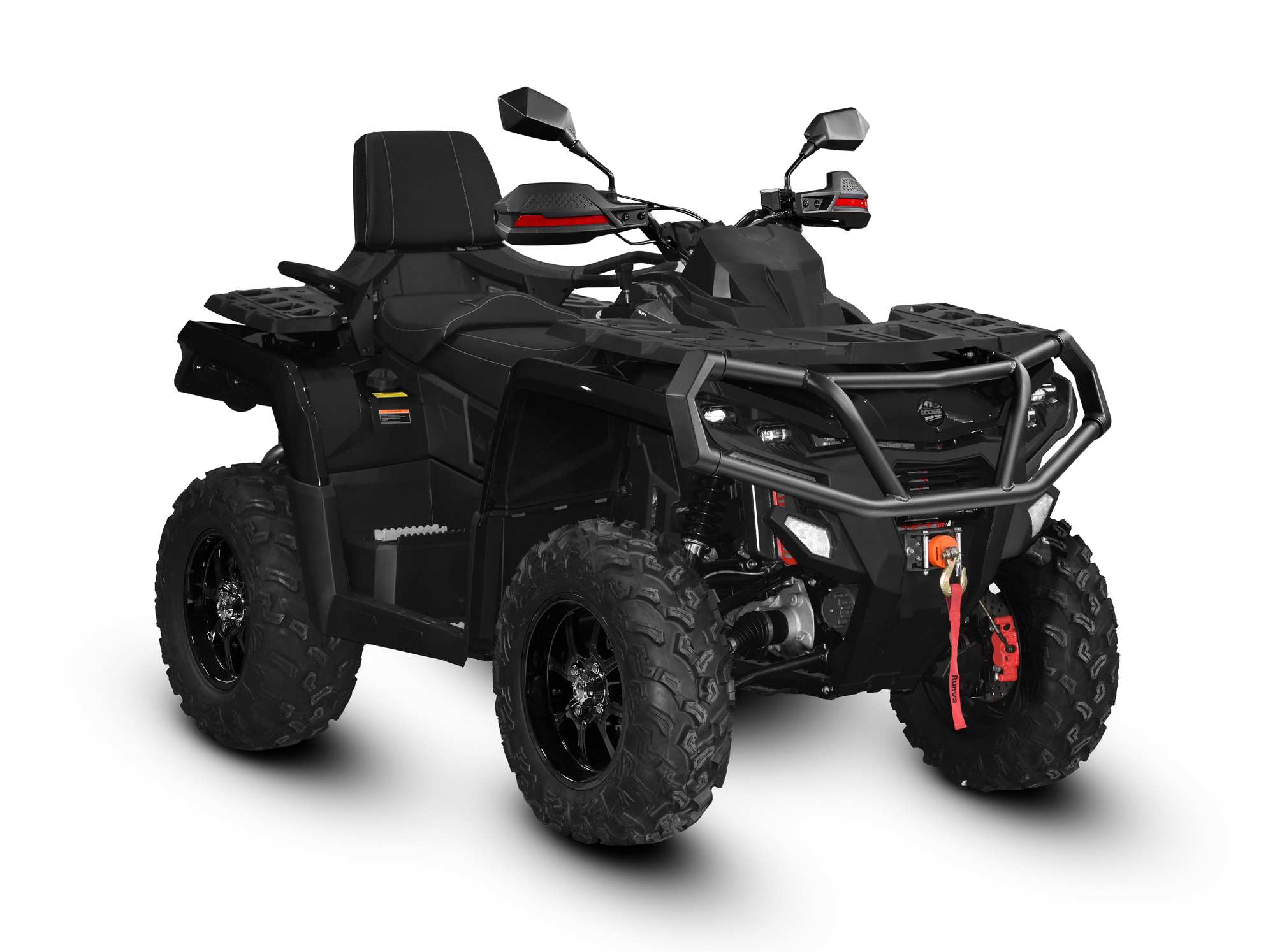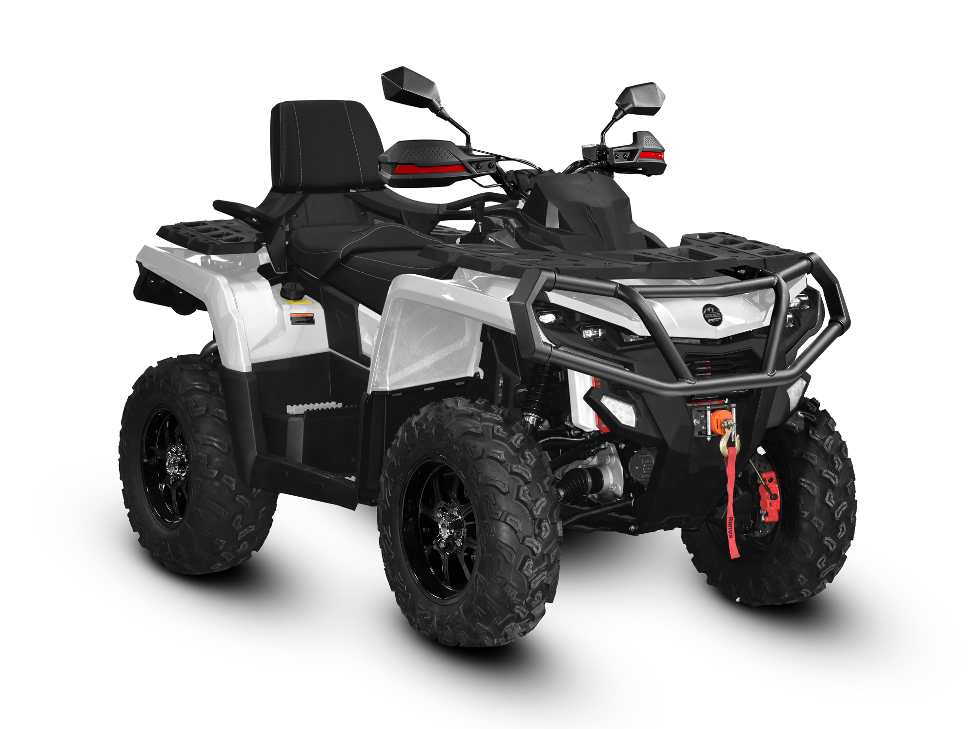 Богатая базовая комплектация. Электроусилитель руля и защита рук позволят с комфортом маневрировать даже в тяжелых условиях. Лебедка с тяговым усилием 1500 кгс поможет вытащить квадроцикл из любой передряги. Передние и задний бамперы защитят корпус от повреждений. Благодаря комфортному пассажирскому сиденью и ручкам вы сможете кататься вдвоем. Алюминиевые диски, яркие светодиодные фары и шесть цветов на выбор.