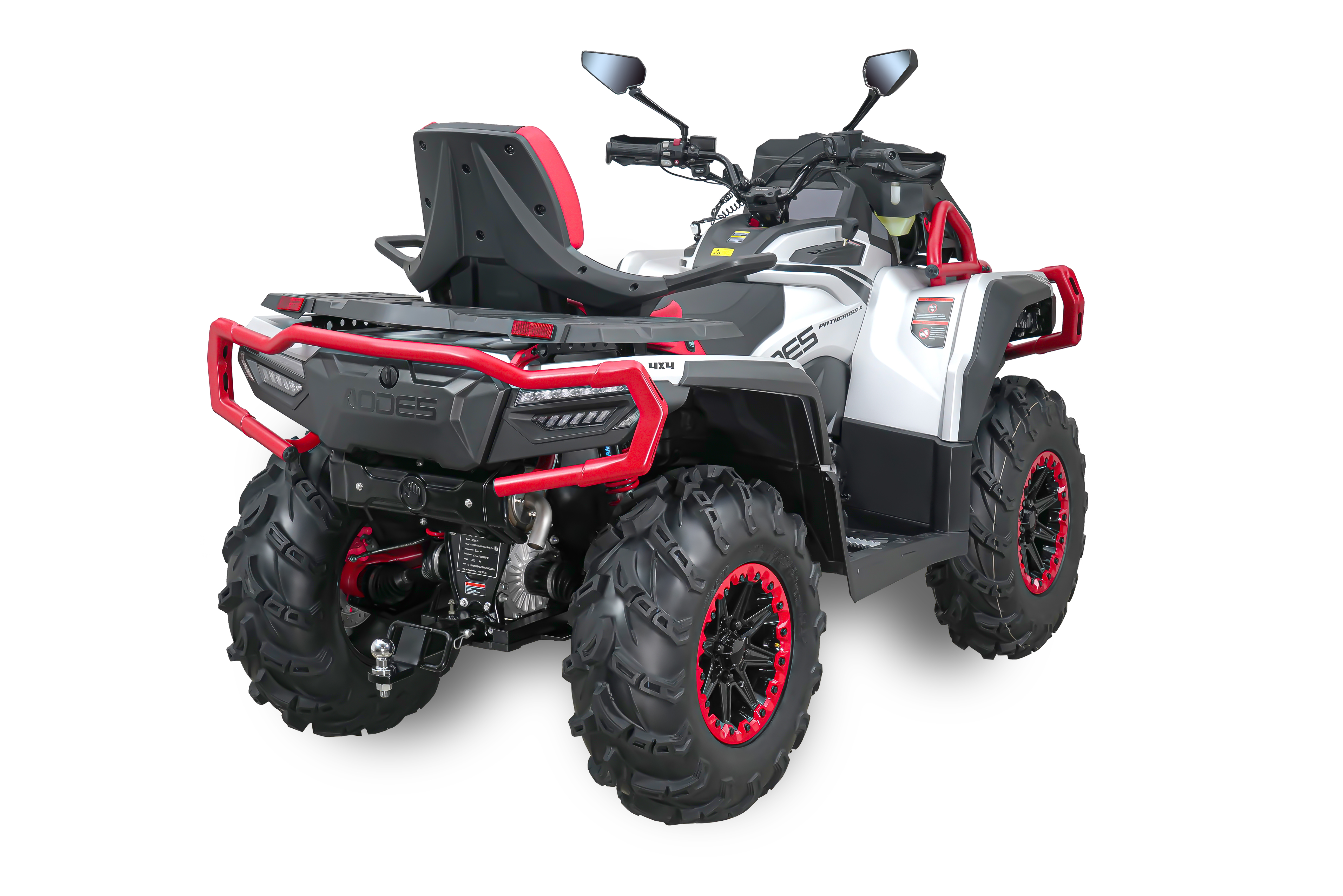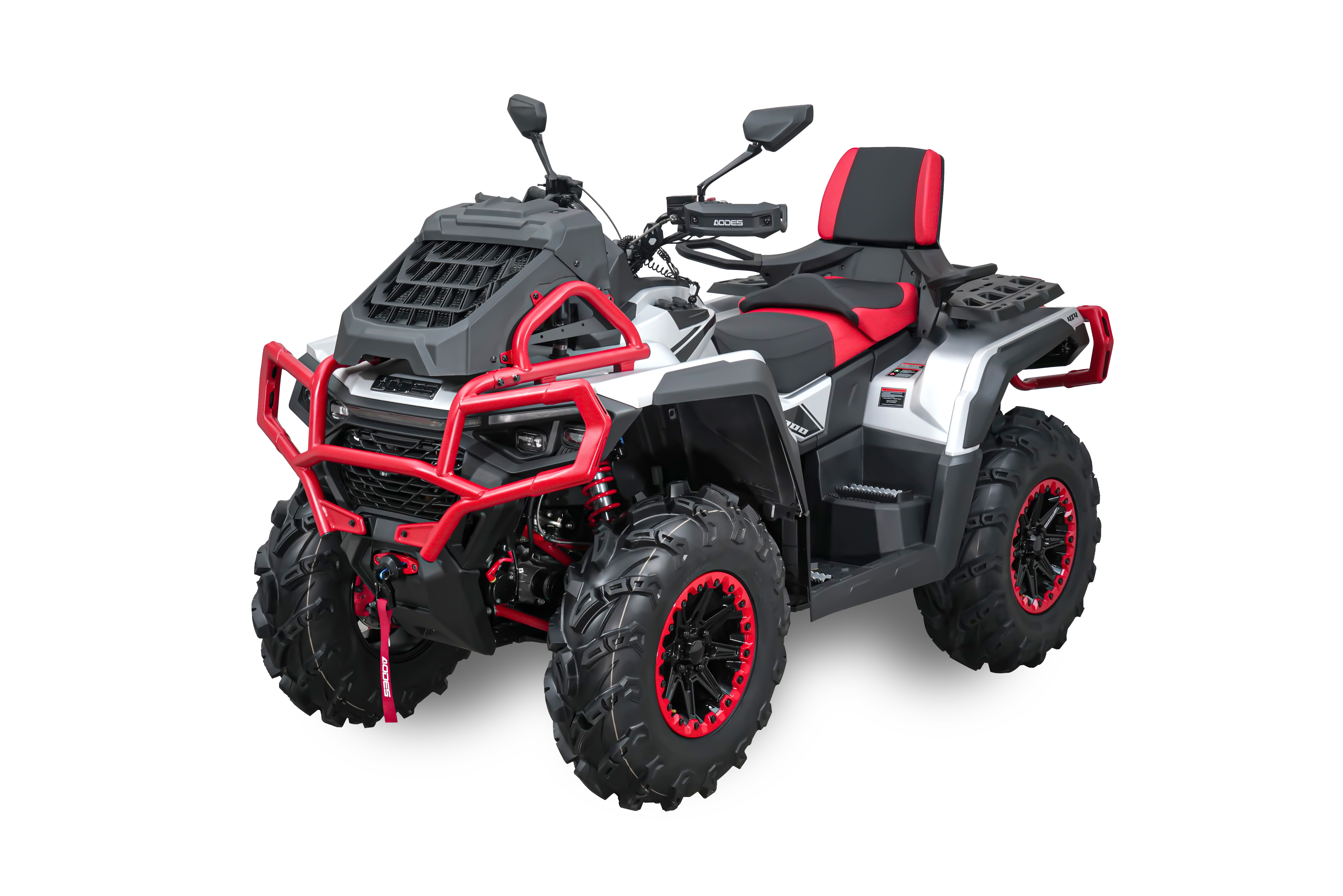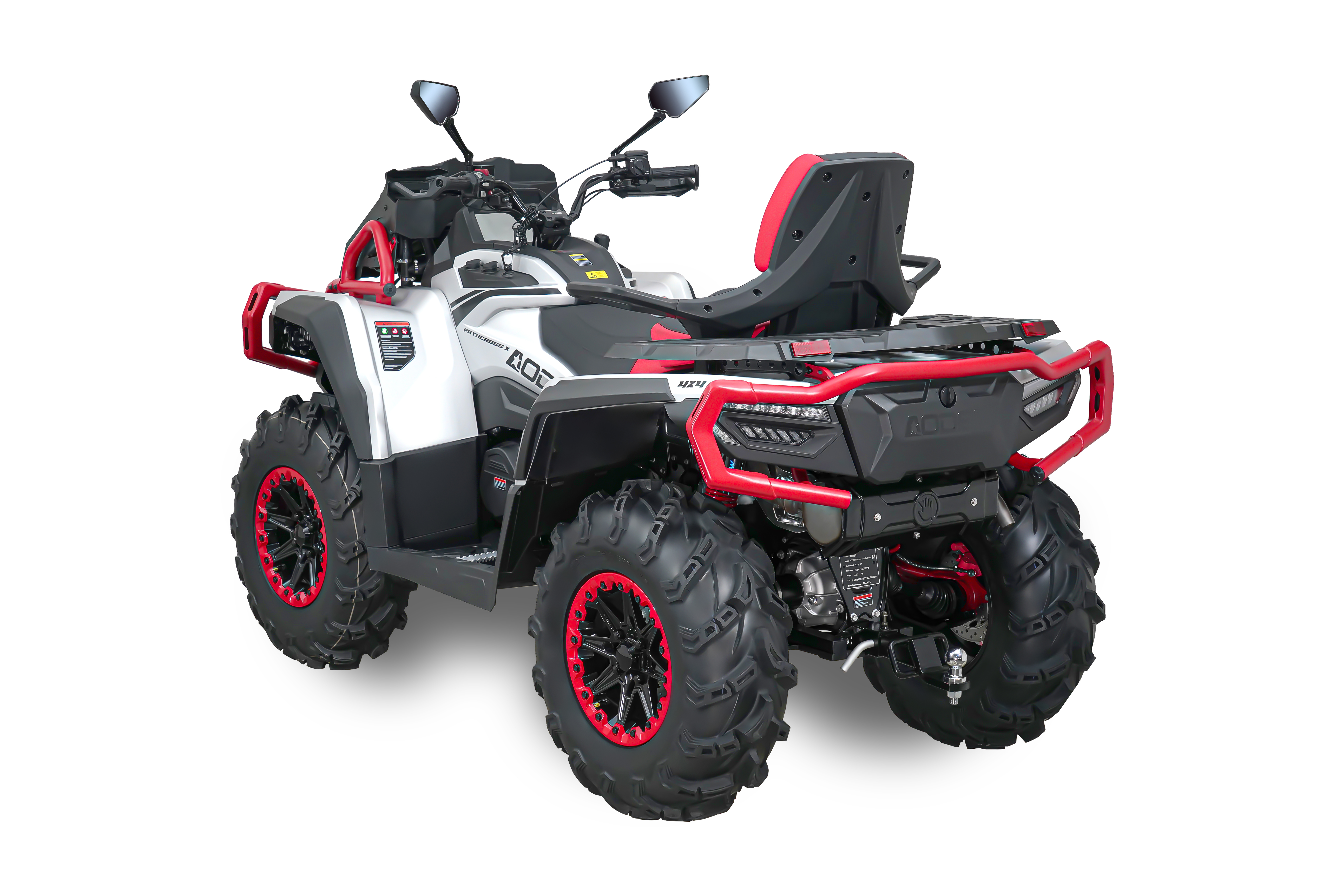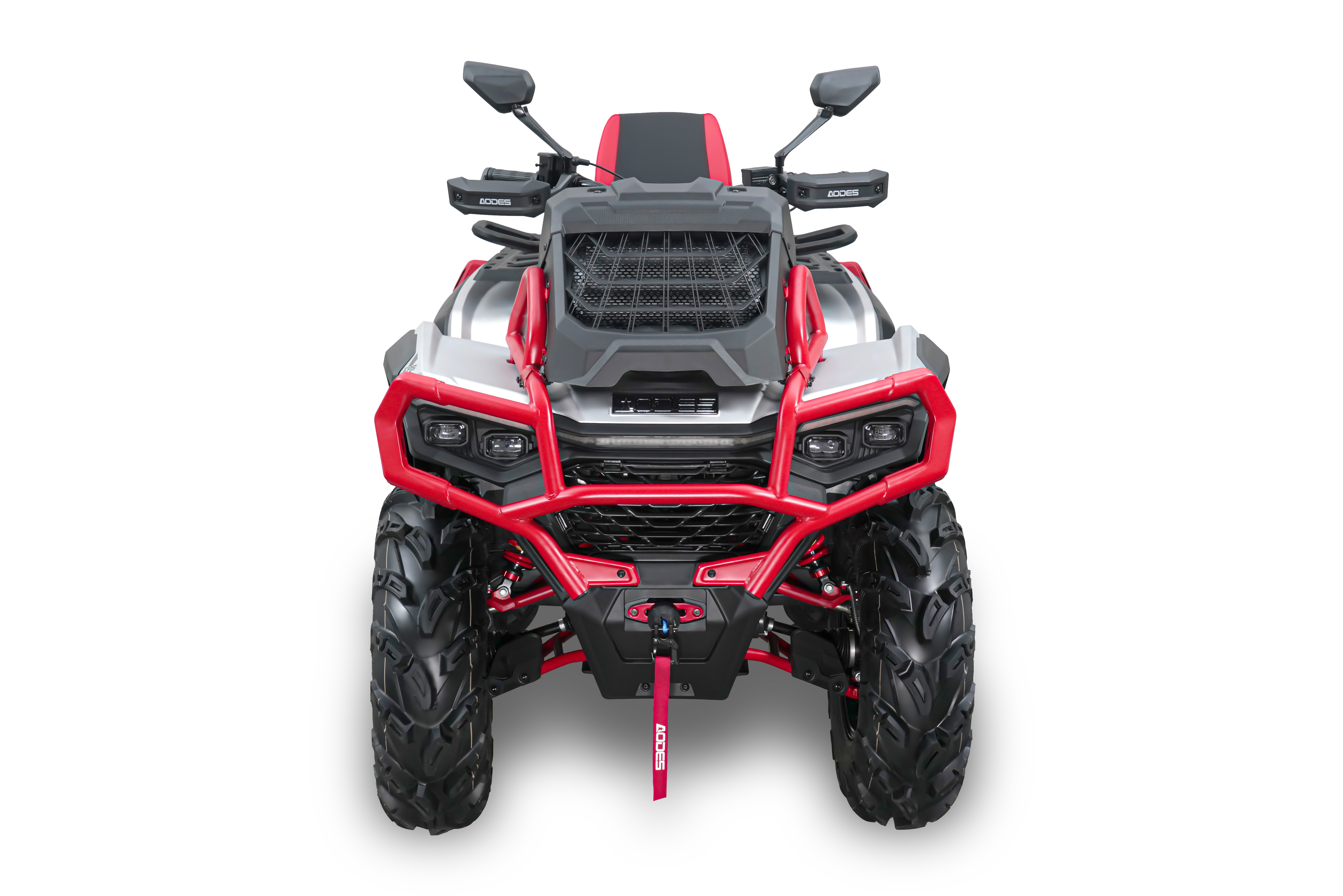 Комплектация квадроцикла включает усилитель руля, лебедку и регулируемые амортизаторы для комфортных поездок. Также с завода установлены защитные элементы: усиленные передний и задний бамперы, ветровые щитки для рук и расширители колесных арок.