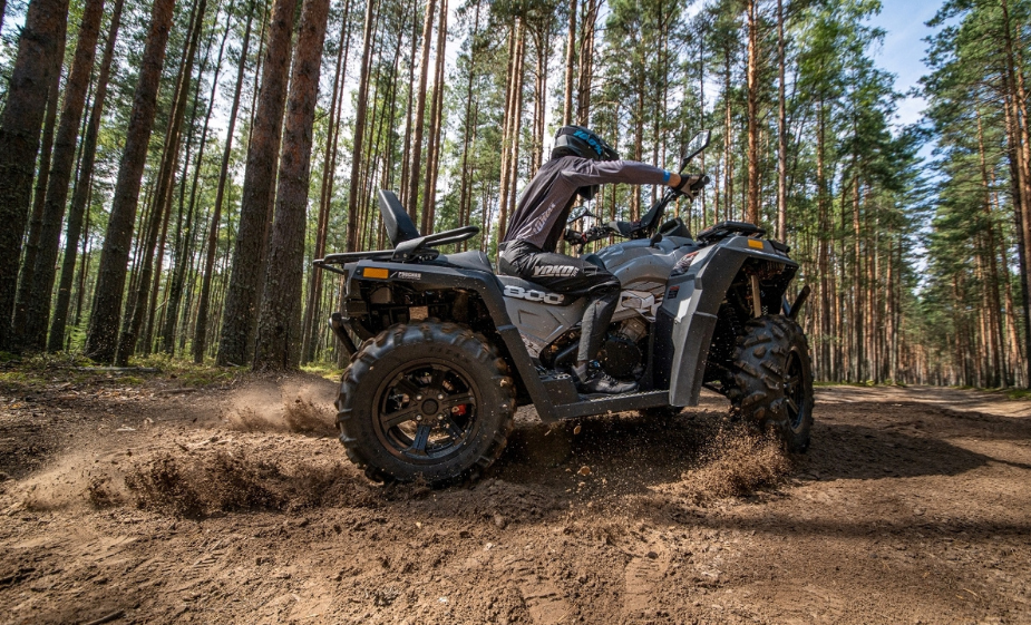 Новый спортивно-туристический полноприводный двухместный квадроцикл Русской механики рассчитан под эксплуатацию в сложных условиях внедорожных рельефов в формате динамичных скоростных ралли или длительных путешествий.