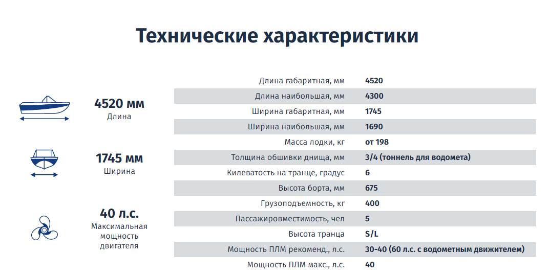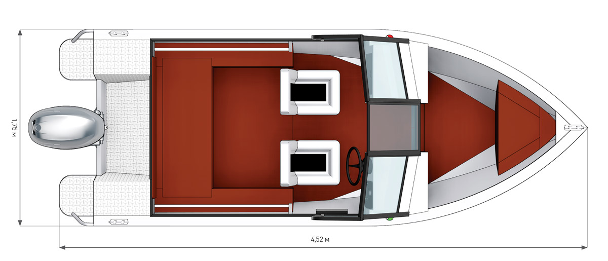На днище применен металл толщиной 3 мм (4 мм у водометной версии «JET»), на бортах – 2 мм.