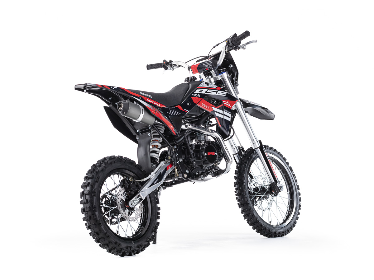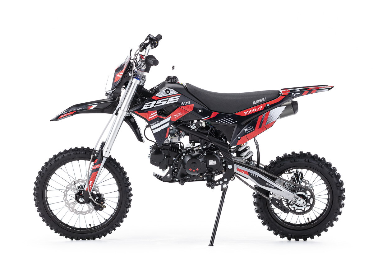Питбайк BSE PH125 на колесах 17/14 дюймов – один из самых популярных, надежных и продаваемых питбайков 125 куб см среди китайских производителей! Этот классический питбайк объёмом 125 см3 обладает рядом модификаций и полезных усовершенствований, которые дополняют его функционал и отличают от конкурентов. PH125 оснащен колесами классическим для питбайка размером колес 17/14. Основа PH125 - рама из хромомолибденовой стали повышенной жесткости с литыми усилителями - фирменный знак качества завода BOSUER! Cиловая установка питбайка – надежный, тяговитый и мощный 4-тактный двигатель Zonghshen 125 куб см с воздушным охлаждением и мощностью 10 лс. Питает мотор карбюратор Jingke PZ 26. Питбайк оснащен 4-ступенчатой механической трансмиссией. Запуск мотора осуществляется при помощи электростартера или кик-стартера. Подвески с большими ходами: передняя - телескопическая вилка перевёрнуто типа, задняя- моноамортизатор. "Злая" резина, Мощная тормозная система HSK Racing, японские колесные подшипники NTN, усиленная цепь 428 Gold, защита мотора - питбайк полностью укомплектован всем необходимым для покатушек и гонок.
