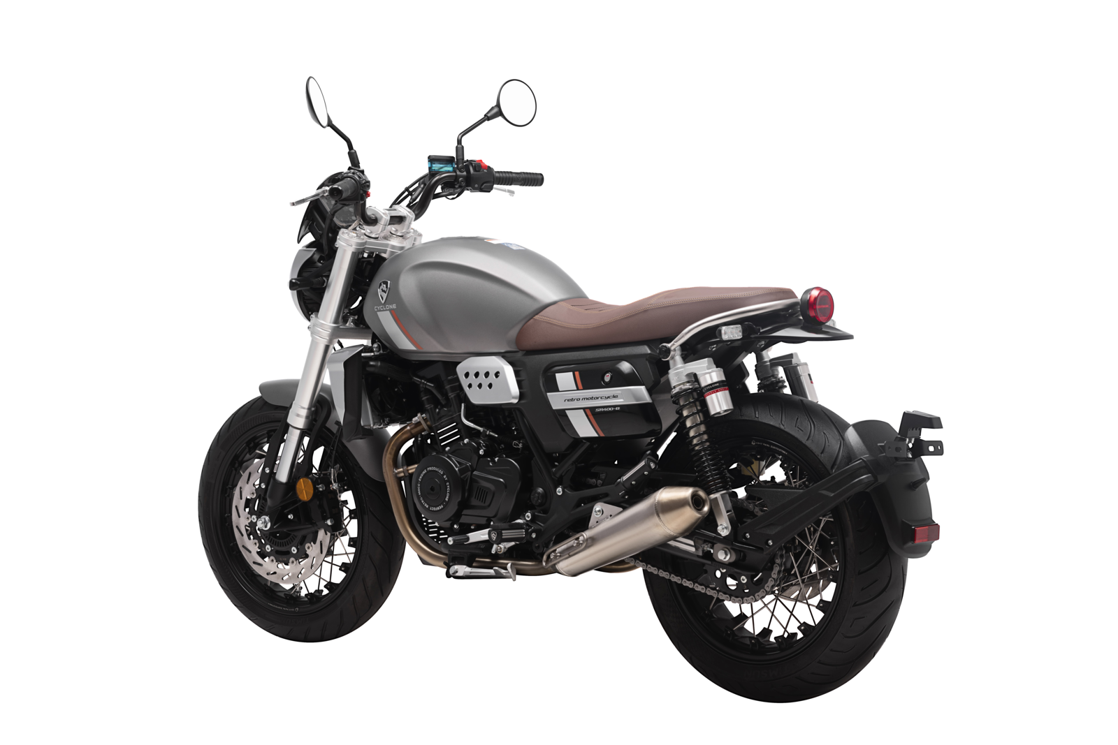 CYCLONE RE401 (SR400-B) – классик, в котором брутальная простота объединяется с современными технологиями. Данная модель является более продвинутой версией модели RE3 (SR-400) – мотоцикл обладает более современным дизайном, снабжён стильными металлическими накладками на радиатор, а также топливным баком, объём которого увеличен до 20 литров.