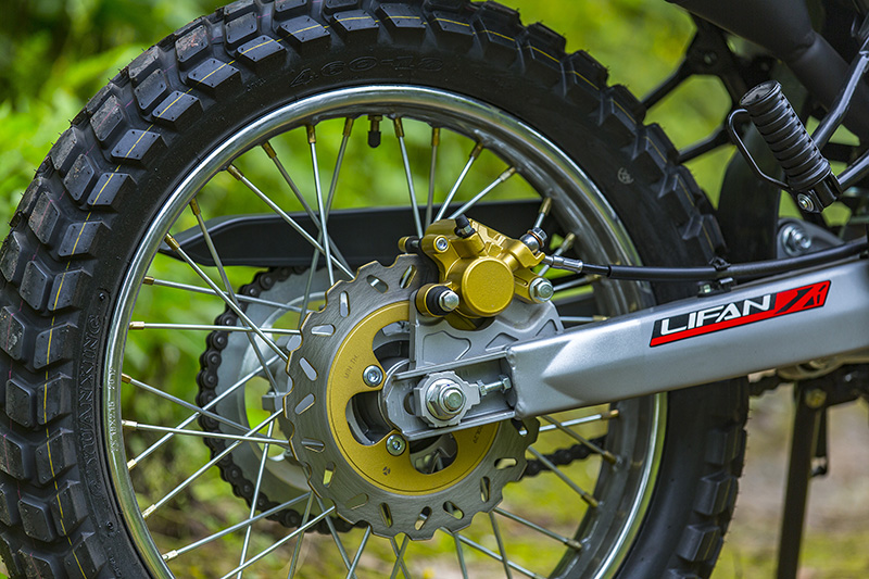 Передняя вилка перевернутого типа диаметром 41 мм с траверсами из алюминиевого сплава, передний ход подвески 224 мм, центральный задний амортизатор, задняя подвеска с ходом 230 мм и высокопрочный рычаг из алюминиевого сплава подходят как для бездорожья, так и для езды в городе.