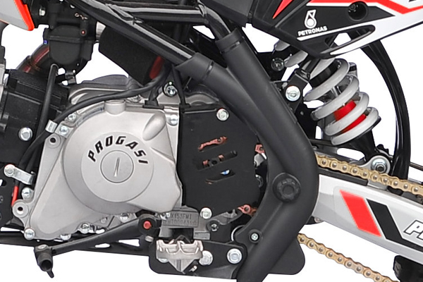 Тормоза – это важнейший компонент питбайка, от которого напрямую зависит безопасность райдера, а также скорость прохождения поворотов. Для безупречного результата на всех моделях PROGASI установлены дополнительные расширительные бачки и армированные шланги тормозной системы. Спереди установлена 2-поршневая тормозная система и 1-поршневая сзади.