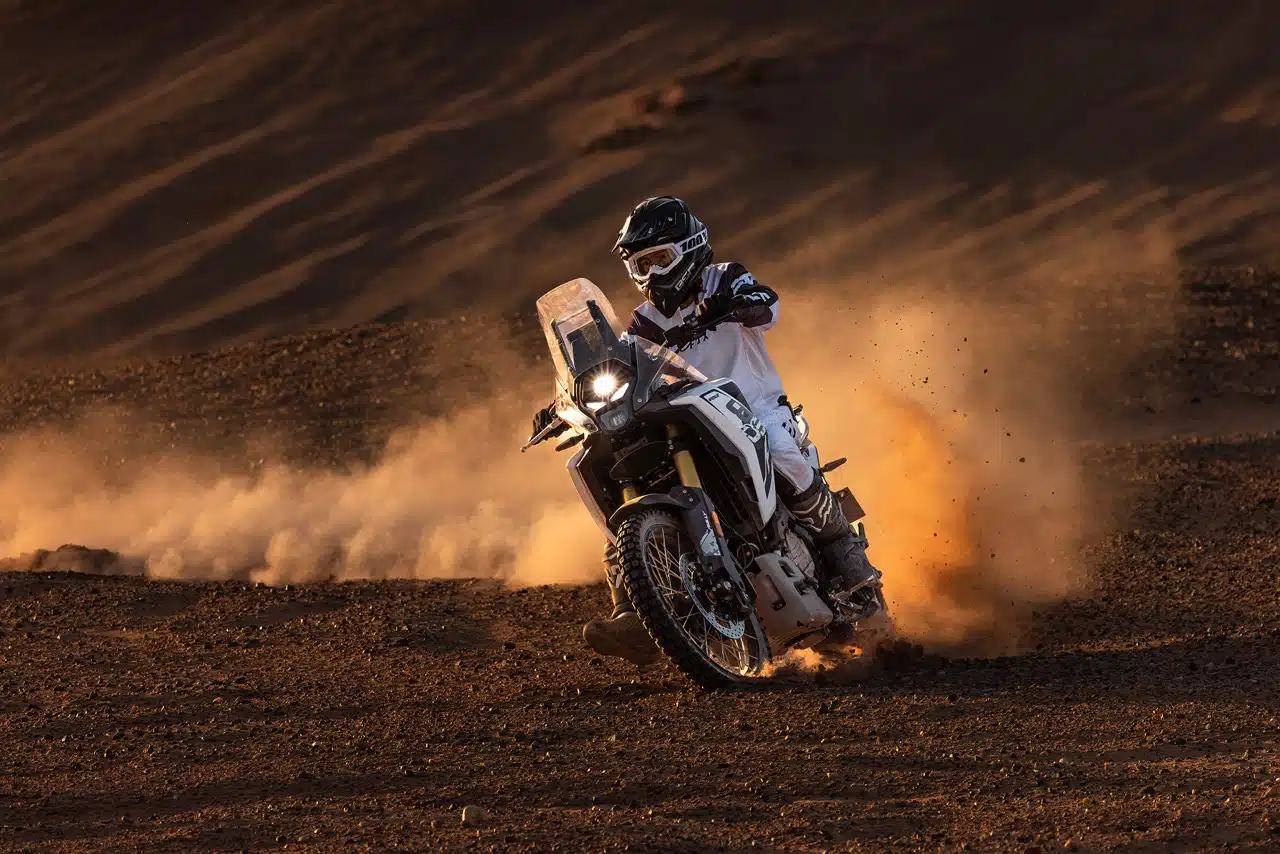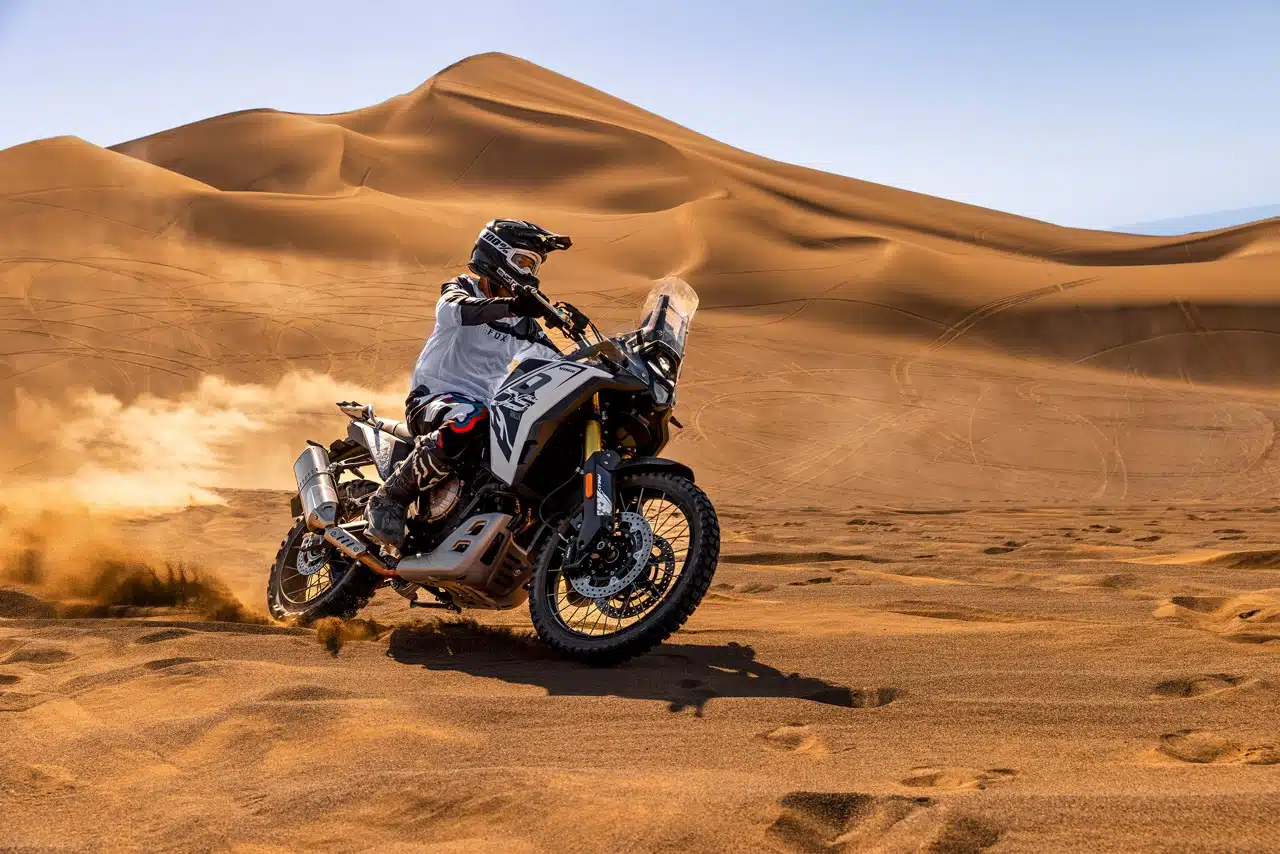 Регулируемая подвеска KYB обеспечивает плавную и комфортную езду, мчитесь ли вы по асфальту или преодолеваете сложные дороги. Благодаря 200-миллиметровому переднему и 190-миллиметровому заднему ходу подвески вы сохраняете максимальный контроль и амортизацию. 21-дюймовые передние и 18-дюймовые задние спицевые колеса в сочетании с вездеходными шинами Pirelli обеспечивают превосходное сцепление и устойчивость на любой поверхности.
