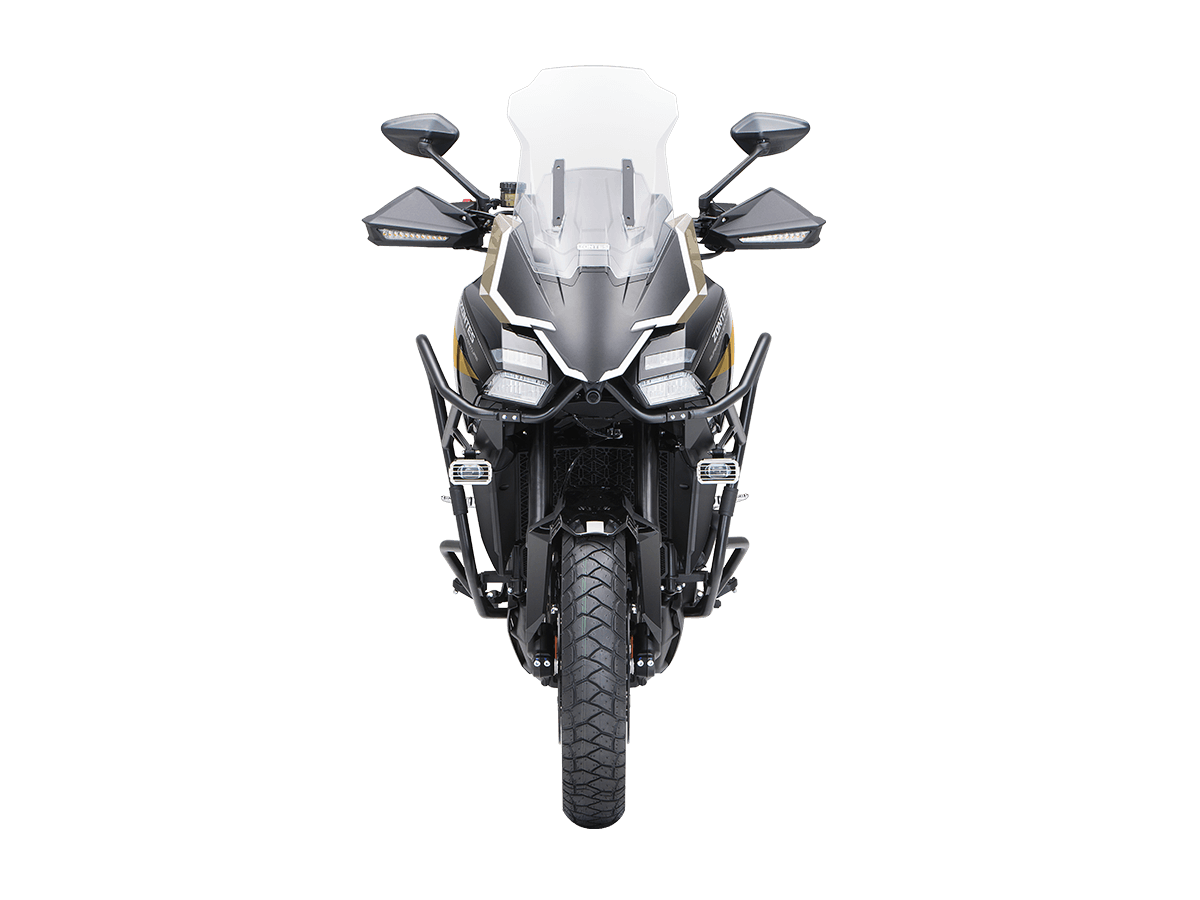 На мотоцикле используется яркая LED-оптика с дополнительным светом и многофункциональная приборная TFT-панель, положение которой можно регулировать. Рычаги тормоза и сцепления можно регулировать. Руль оснащён функцией подогрева и защитой рук. Спереди и сзади установлены видеорегистраторы. Мотоцикл оснащён датчиками давления в шинах. Ветровое стекло имеет электронную регулировку и настраивается через кнопки на руле. Имеется 2 USB-порта. Вещи можно перевозить в багажном отсеке, или присоединить кофры для перевозки: имеется площадка для установки центрального кофра и крепления для боковых кофров. Мотоцикл поставляется с центральной подножкой в комплекте.