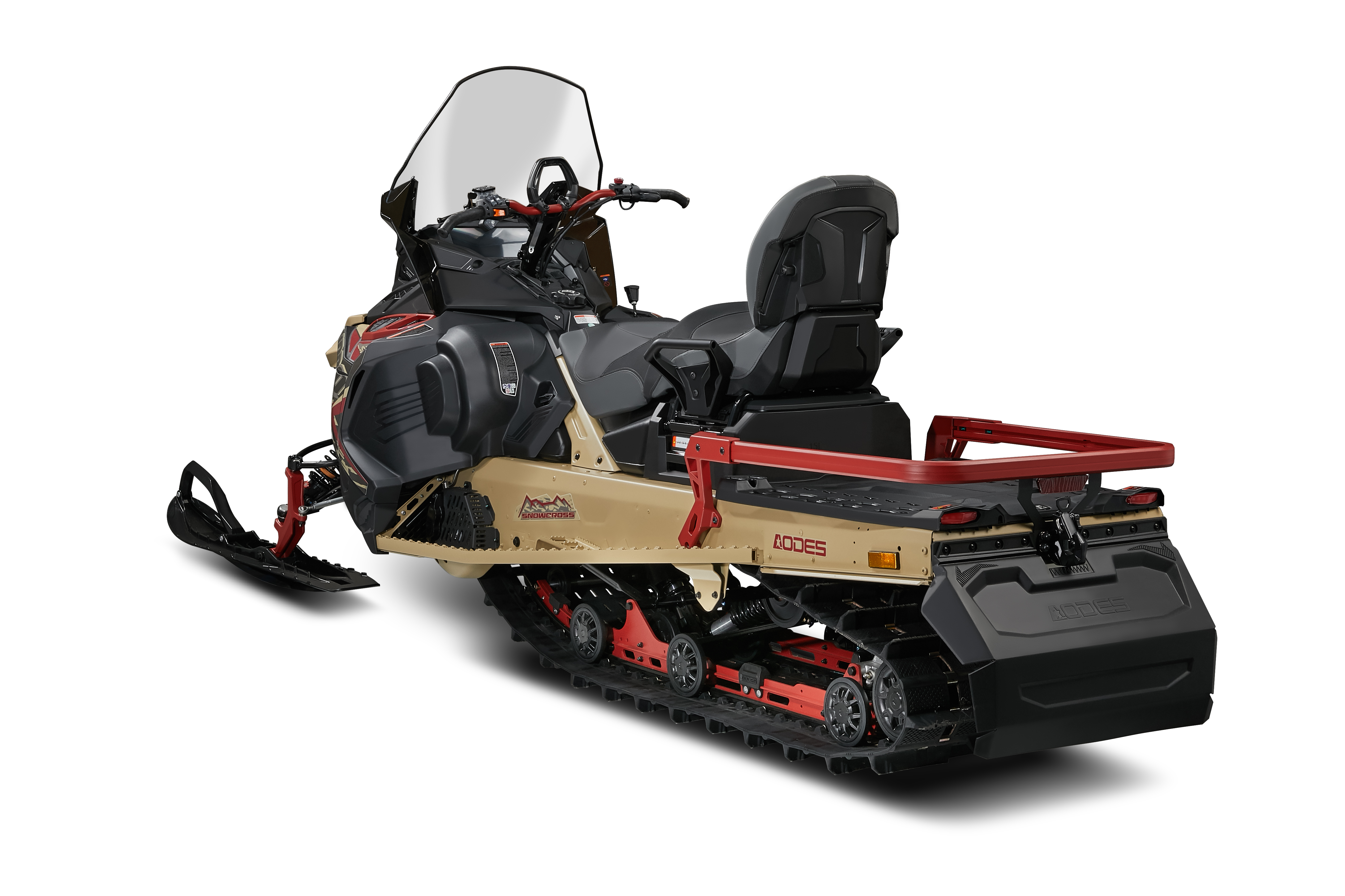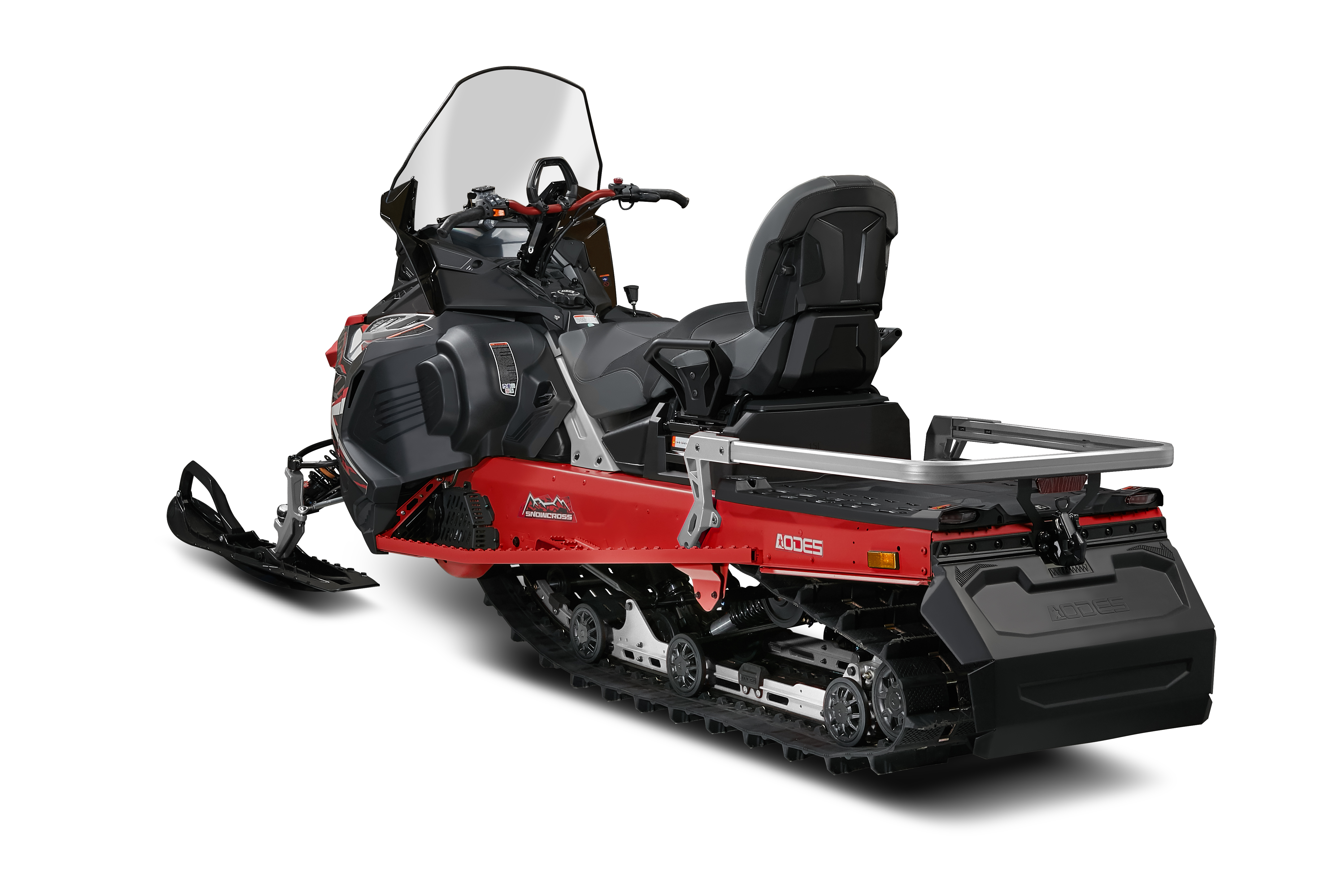 В комплектации есть всё необходимое для комфортных поездок: мягкое двухместное сиденье со спинкой и поручнями для пассажира; система обогрева рукояток руля, курка газа и водительского сиденья; бамперы, а также большой багажник с креплениями для аксессуаров. Кроме этого, на всех снегоходах AODES Snowcross есть сенсорный дисплей с диагональю 10,25″, на который выводится вся информация