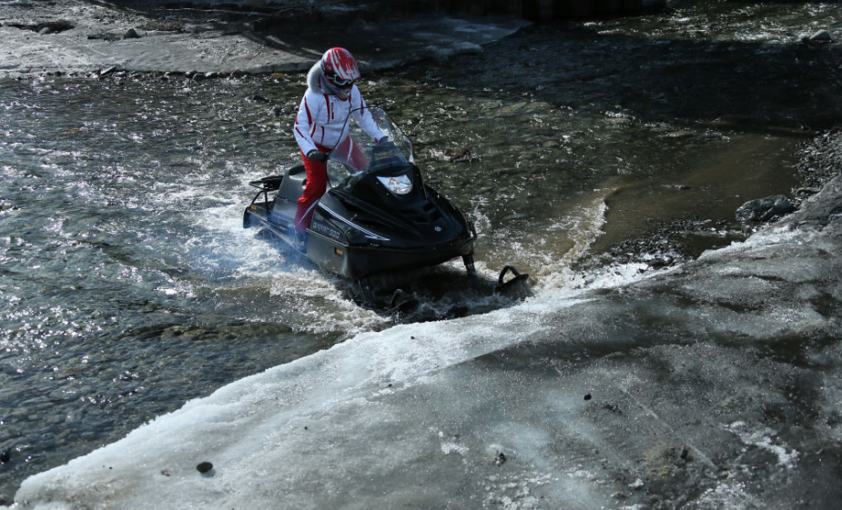 Из особенностей модели стоит отметить высокий руль, позволяющий активно маневрировать в положении стоя. У снегохода двухуровневое сидение и обогрев рукояток руля с курком газа. Высокое ветровое стекло с мощной фарой головного света.